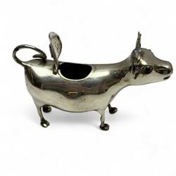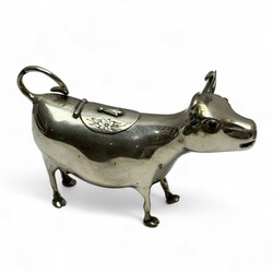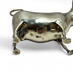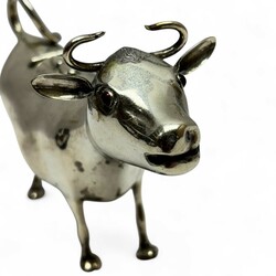 | Omschrijving | Een 20e eeuws tweede gehalte (835/1000) zilveren melkkan in de vorm van een koe, met rode steentjes als ogen en gekrulde staart. Gekeurd met lopende leeuw, jaarletter G (1916) en meesterteken ‘N2’ in ovaal = Johannes Jacobus Neurdenburg, periode 1894 tot 1923, werkzaam in o.a. Utrecht en Rotterdam. |