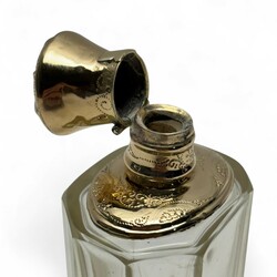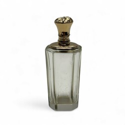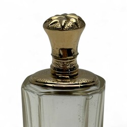 | Omschrijving | Achtkantig geslepen kristallen parfumflacon, de 14 karaats gouden dop met stermotief |