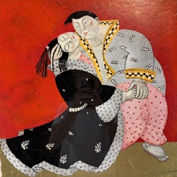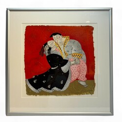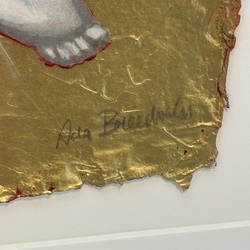 | Omschrijving | Ada Breedveld (1944), Japans liefdespaar, zeefdruk op geschept papier met goudblad, oplagenummer 46/90, rechtsonder gesigneerd |