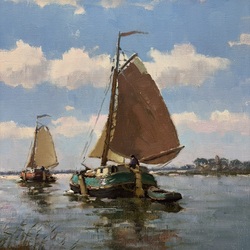 | Omschrijving | Schilderij, olieverf op doek. Twee zeilschepen op een zomerse dag. Rechtsonder gesigneerd Arnout van Gilst (Den Haag 1898 – 1981) |