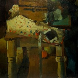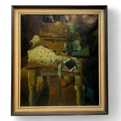 | Omschrijving | Schilderij, olieverf op doek. Tafel met o.a. naaigerei., Rechtsonder gesigneerd Benjamin Royaards (Schoorl 1939 -Montbrison-sur-Lez 2003). |