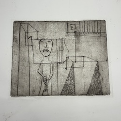 | Omschrijving | Ets op papier, naakte man met snor. Ongesigneerde ets van Boele Bregman (Aengwirden 1918 – Heerenveen 1980). |