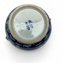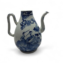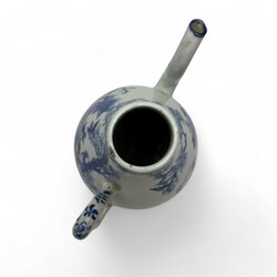 | Omschrijving | Chinees porseleinen koffiekan met blauw-wit decor: aan de ene zijde een feniks, aan de andere zijde een paar kraanvogels, temidden van bloementuin met bloeiende pioenrozen, Qianlong gemerkt, 19e eeuw |
