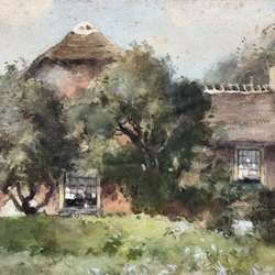 | Omschrijving | Aquarel op papier, voorstelling van een boerderijtje. Rechtsonder gesigneerd Chris van der Windt (Sint-Jans-Molenbeek 1877 – Leiden 1952). |
