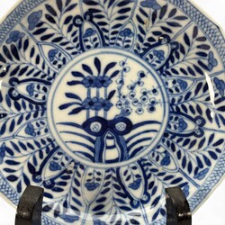 | Conditie | Schotels in goede staat: één schotel met randchip, één kopje met randchip resulterend in haarlijn, en nog een haarlijn |
