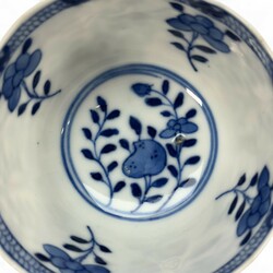 | Omschrijving | Drie Chinees porseleinen kop-en-schotels met peterseliedecor, gemerkt met bloemteken, 19e eeuw |