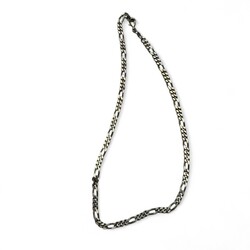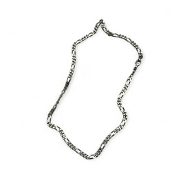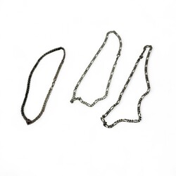| Omschrijving | Drie eerste gehalte zilveren kettingen: twee kettingen met figaro schakels, en één ketting met tandvormige fantasie schakels |
