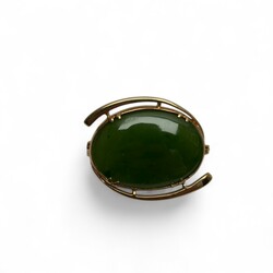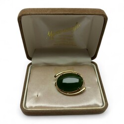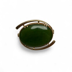 | Kavel | 654. Een 9 krt gouden broche met cabuchon geslepen jadeiet |