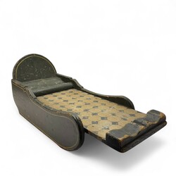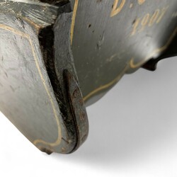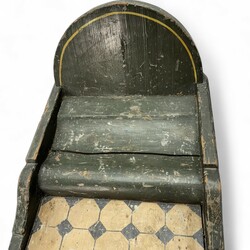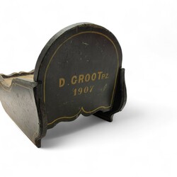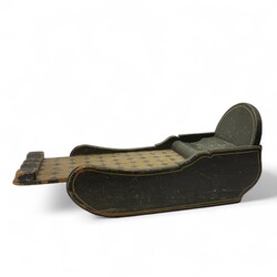 | Omschrijving | Een antieke houten en beschilderde prikslee, 85 x 32 x 36 cm hoog. In het groen met zwart wit geblokt. Met naam en datering op de achterzijde: D. Groot P.Z. 1907. |