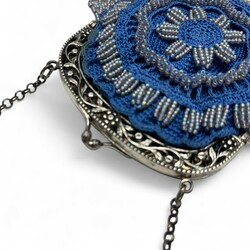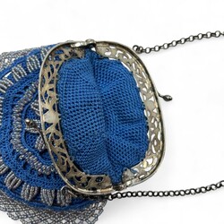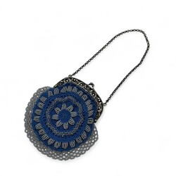 | Omschrijving | Een stoffen kralentas aan 2e gehalte (835/1000) zilveren beugel. Mr J.S. Gaastra,Grouw 1858-1878. |