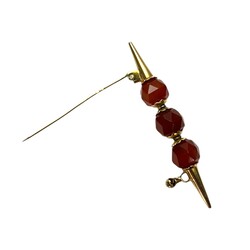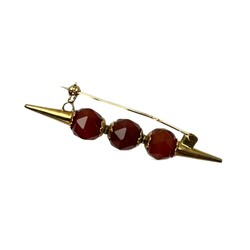 | Omschrijving | 14 karaats gouden broche met drie ronde geslepen carneolen |