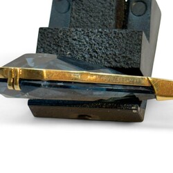 | Omschrijving | Een 20e eeuwse hanger, gefacetteerde ruitvormige blauwglazen steen in 14 karaats (585/1000) gouden montuur. |