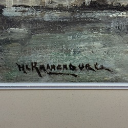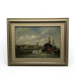 | Kavel | 761. H. C. Kranenburgh (1917-1997). Schilderij: haven met schepen. |