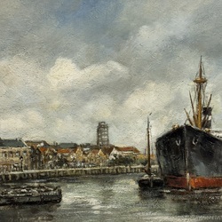 | Omschrijving | H. C. Kranenburgh (1917-1997), Haven te Rotterdam met baggerschip en diverse schepen, olieverf op doek, gesigneerd. |