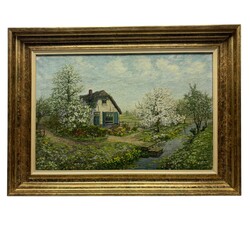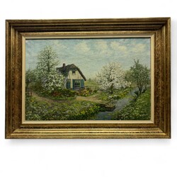 | Omschrijving | Schilderij, olieverf op doek. Landschap met huisje in de lente , mogelijk Betuwe. Rechtsonder gesigneerd Huibert Antonie Ravenswaaij (Gorinchem 1891 – Lisse 1972). |