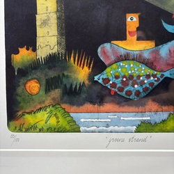 | Omschrijving | Holly Witteveen (1948), ‘Groene strand’, zeefdruk, oplagenummer 83/100, gesigneerd in potlood en gedateerd ‘98 |