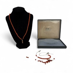 | Omschrijving | Lot divers bloedkoraal, met twee losse 14 karaats (585/1000) gouden kapittelsloten |