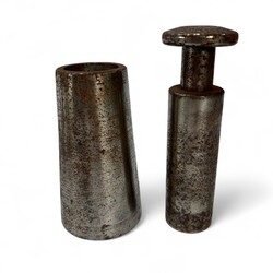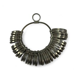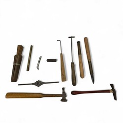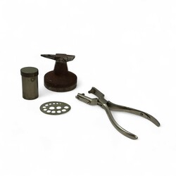 | Omschrijving | Lot divers goudsmidgereedschap, waaronder ringmaten en een bakelieten doosje met drie glazen potjes voor het toetsen van goud |