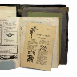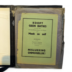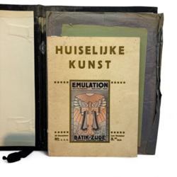 | Omschrijving | Map met drie zeldame uitgaves van het blad" Huiselijke Kunst". Door Studio Emulation in Weltevreden in Nederlands Oost Indië. Blad over de Batikkunsten in 1921. Uitgegeven door Quirien A.A. Krijnen (1883-1945) en Nellie Krijnen - Sulie (1887-1965). Hierbij vele batikpatronen in map. In redelijke staat. |