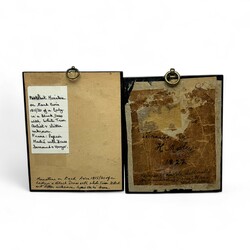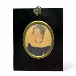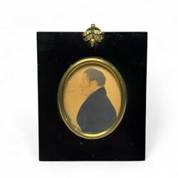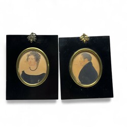 | Omschrijving | Paar 19e-eeuwse Engelse portretminiaturen: dame in zwarte jurk, maker onbekend, en portret en profil van een heer, verso met opschrift ‘[..] by H. Mosley 1822’, beide aquarel op papier, in gezwarte lijstjes met messing monturen |