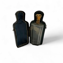 | Omschrijving | Glazen parfumflacon met 14 karaats gouden dop, gedecoreerd met een ster, in bijbehorend foedraal |