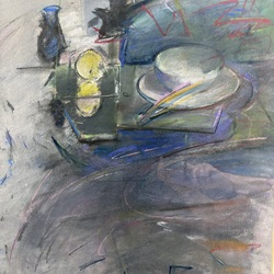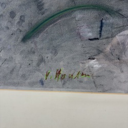 | Omschrijving | Pasteltekening op papier, stilleven met hoed en appels. Middenonder gesigneerd Peter B. van Houten (Amsterdam, 1943). |