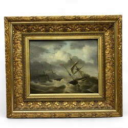 | Omschrijving | Schilderij, olieverf op paneel. Twee schepen op stormachtige zee, waaronder een stoomschip. Rechtsonder gesigneerd ‘W. Kats’, Hollandse School 19e eeuw |