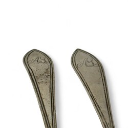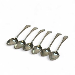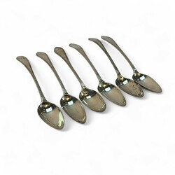 | Omschrijving | Zes tweede gehalte antieke zilveren theelepels met gegraveerd monogram ‘AL’ in de steel, 1825, onduidelijk meesterteken |