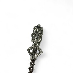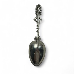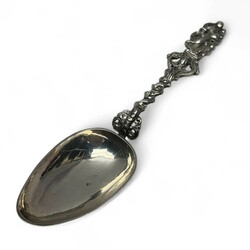 | Omschrijving | Zilveren geboortelepel, de steel bekroond door De Liefde [moeder met kinderen], onduidelijk meesterteken [..VH?], jaarletter 1854 |