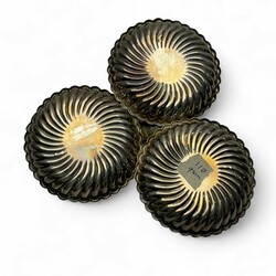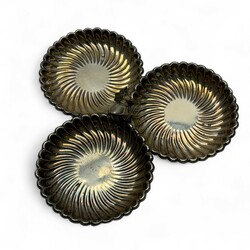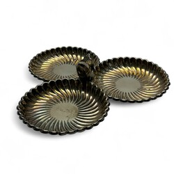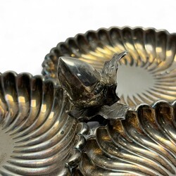 | Omschrijving | Zilveren serveerschaaltje, opgebouwd uit drie schaaltjes met waaier decor, het greepje in de vorm van eikeltje met eikenbladeren, gemerkt met een Davidsster, vermoedelijk Italiaans |