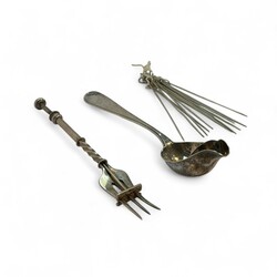 | Kavel | 1015. Zilveren vleesvork, serveerlepel, en set prikkers |
