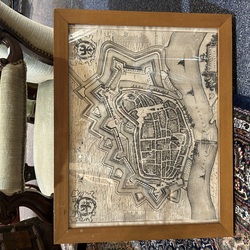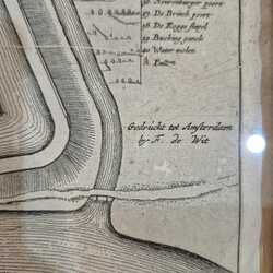 | Omschrijving | Antieke kaart van Deventer, kopergravure op papier, in lijst. Gedrukt door F. de Wit |