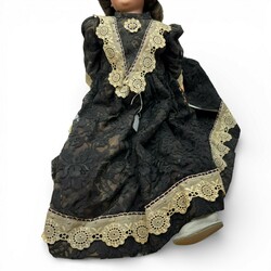 | Omschrijving | Een antieke pop met een porseleinen hoofd voorzien van slaapogen en open mond. Met papiermaché benen en handen. Gekleed. Gemerkt met een nummer 390 en A8M voor Armand Marseille. Ca 1900. |