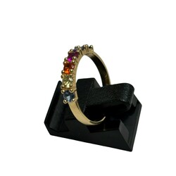 | Kavel | 586. Gouden Happiness rijring met gekleurde stenen |