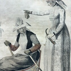 | Kavel | 968. Handgekleurde gravure, vrouwen op het ijs. |