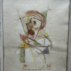 | Omschrijving | Gemengde techniek op papier, kubistische voorstelling. Aan de onderzijde tekst 'Portret van een Groot Kunsthandelaar". Rechtsonder gemonogrammeerd 'HW' = Hollie Witteveen (Leeuwarden, 1948), gedateerd 1994. |