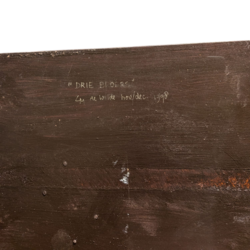 | Omschrijving | Een 20e eeuws sculptuur, titel ‘Drie Boers’. Aan de onderzijde gesigneerd L.M. de Wilde, gedateerd 1998. |