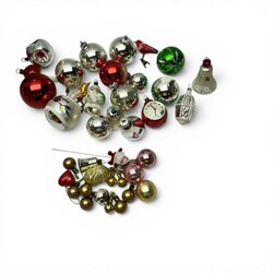 | Omschrijving | Lot diverse kerstversiering in vier verschillende doosjes, waaronder veel antieke glazen kerstballen en een groot formaat antieke piek. |