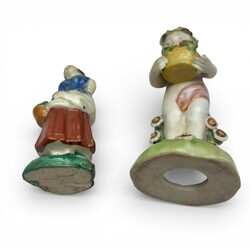 | Omschrijving | Lot van vier porseleinen beeldjes en twee vergulde wandconsoles. |