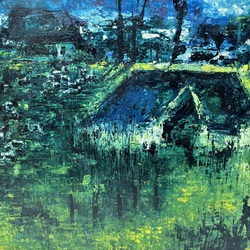 | Omschrijving | Olie op board Meinte Walta, ‘Kij yn’e jister’, jaren ’70, |