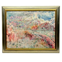 | Omschrijving | Schilderij, olieverf op paneel. Compositie van een lam in landschap met op achtergrond links een dorp met persoon in deuropening. Op rechts een berg met mogelijk een kerk er op, onder berg een kerkhof. rechtsonder gesigneerd Meinte Walta (Wijtgaard, 1920 - Leeuwarden, 2002). |