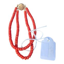 | Omschrijving | Een 20e eeuws tweerijig bloedkoralen armbandje met 14 karaats (585/1000) geelgouden slot. |