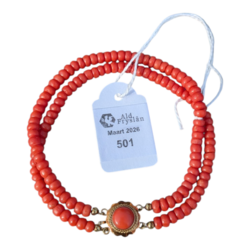 | Kavel | 501. Tweerijig bloedkoralen armband met gouden slot |