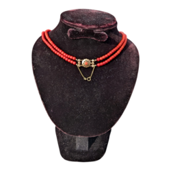 | Kavel | 502. Tweerijig bloedkoralen collier met gouden slot |