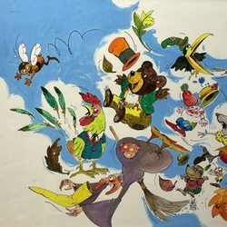 | Omschrijving | Gouache op papier, voorstelling van diverse vliegende dieren en figuren. Origineel ontwerp voor het boek 'Alles in de wind - 50 vrolijke verhaaltjes' door Nelly Kunst. Middenonder gesigneerd Will Berg (Arnhem 1921-2001). Met daarbij het boek 'Alles in de wind'. |
