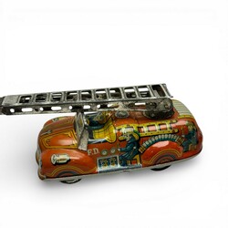 | Omschrijving | Zes kleine blikken brandweer auto's en een clown op wagen jaren 50 t/m jaren 90. Waaronder een jaren 50 ladderwagen CKO Kellermann, Duitsland. |
