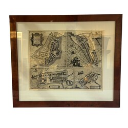 | Omschrijving | Een antieke 16e eeuwse kopergravure, kaart met stadsplattegronden in vogelvluchtperspectief van Bolsward ('Bolzvardia'), Stavoren ('Stavria'), Harlingen ('Harlinga' en Hindeloopen ('Hindelopia'), uitgegeven in 1588 te Keulen (in 'Liber Quartus Urbium Praeipuarum totius Mundi') door Braun & Hogenberg. |