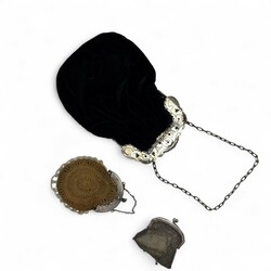 | Kavel | 1592. 19e eeuws zilveren tasbeugel en twee zilveren beursjes |