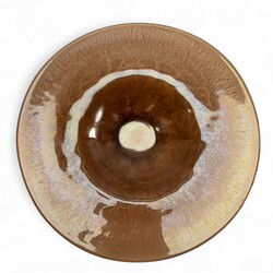 | Kavel | 1444. A. D. Copier (1901-1991), Leerdam. Bruin glazen Serica schaal |