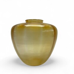 | Omschrijving | Glazen vaas uit de collectie Sonoor. Amber kleurig en voorzien van tin craquelé. Ontwerp van A.D. Copier voor glasfabriek Leerdam, ca.1935. |